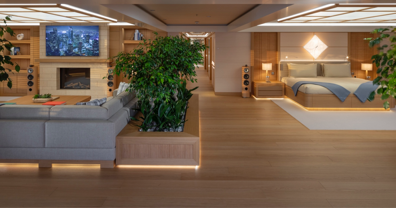 Accommodating 22 guests in 10 deck-level VIP Suites and a vast Master Apartment with private terrace, Flying Fox offers its guests a palatial living experience. Step into airy elegance and make yourself at home. Relax into the harmony of the decor — a gentle symphony of golden oak and caramel bamboo, brushed limestone and pale travertine marble. Breathe in the greenery from real fig trees, and bask in sea views and natural light. Welcome to life aboard Flying Fox. It’s time to settle in.