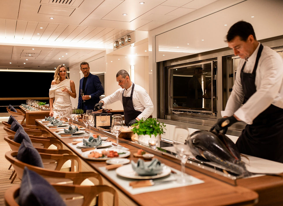 Trained under Australian celebrity chef Adrian Torbin, Chef Colin Van Haeften comes to Flying Fox with an illustrious resume that includes exclusive London restaurants and some of the most iconic superyachts in the global fleet. Colin is an extremely versatile chef, achieving excellence in a range of cuisines including French, Thai, Italian, Indian, Japanese, Mediterranean and Modern Australian. He has a passion for patisserie drawn from his time at culinary school in France, and guests will be treated with an exquisite range of pastries and sweet treats throughout the days of their charter.